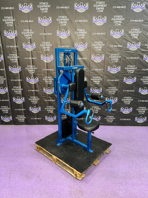 Hammer Strength seated standing shrug in excellent condition. This is a perfect unit for performing shrugs, dead lifts and even bent rows. You can load up a ton of 45. or 100 lb. plates on this unit. It is much safer and easier in the lower back (and just as effective) than using free weights.