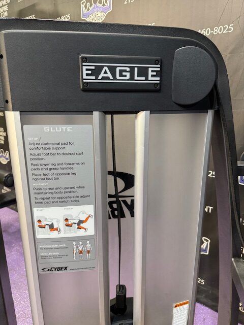 Cybex Eagle Glute Kickback – Titanium w / 300 Lb Stack. Cybex is the industry leader in commercial gym equipment, and the brand is in the majority of the gyms around the country. This machine is Kevlar belt driven and extremely smooth. This machine will help you get those glutes and hamstrings right!