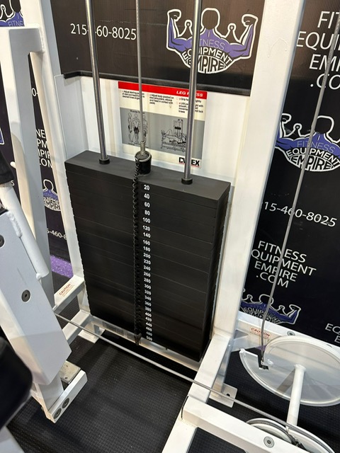 Cybex horizontal lying leg press. I promise that this machine will annihilate your legs from top to bottom. The quads, glutes, hams and even calves will be ON FIRE. This unit is second to none. I promise it’s one of the best leg presses I’ve ever used hands down. It’s known to my circle as the Torture Device. The beautiful thing is that it feels so natural and your knees or hips will not hurt. Smooth machine in excellent condition.
