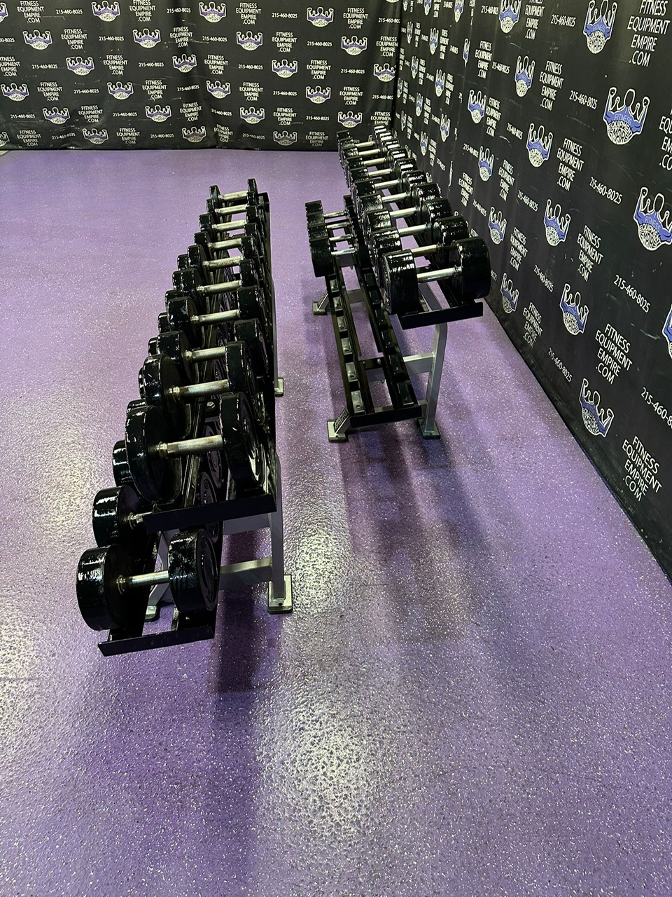 These dumbbells are in BEAUTIFUL condition. RACKS NOT INCLUDED but Are available for purchase.