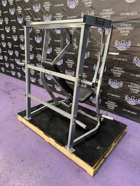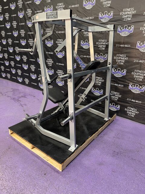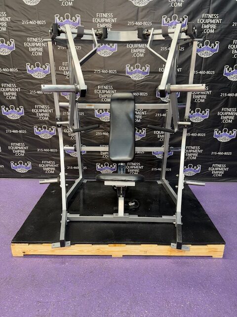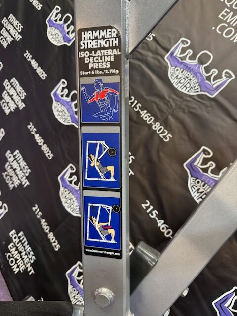 Hammer Strength ISO lateral plate loaded decline chest press. This machine is in excellent condition. It is an extremely popular unit by Hammer Strength and can be found in almost every gym in the country. The decline press is a must do exercise for the pecs, and is what will create that nice full, round, shelf look to the chest.
