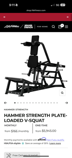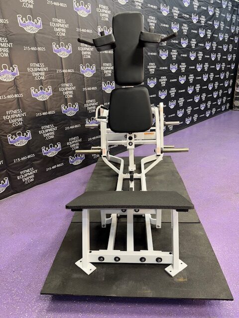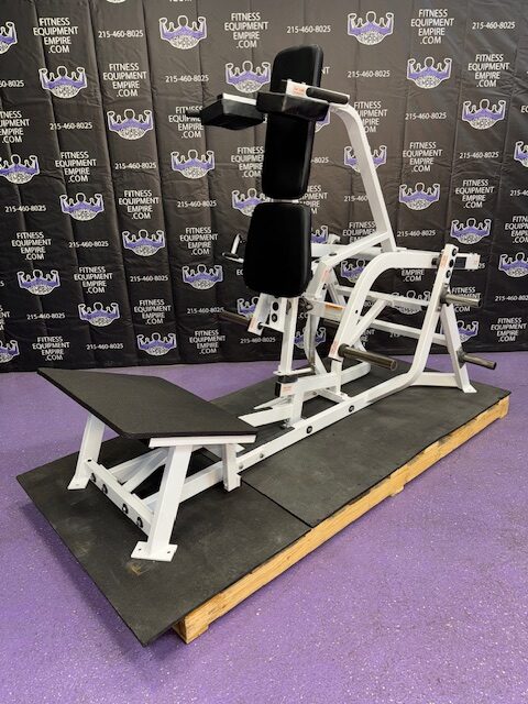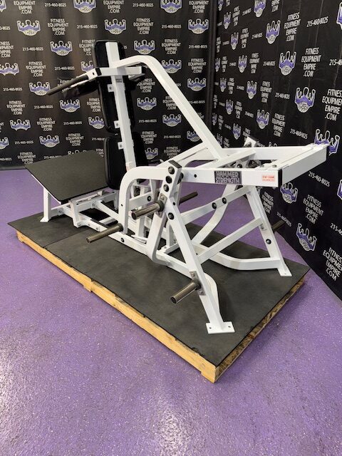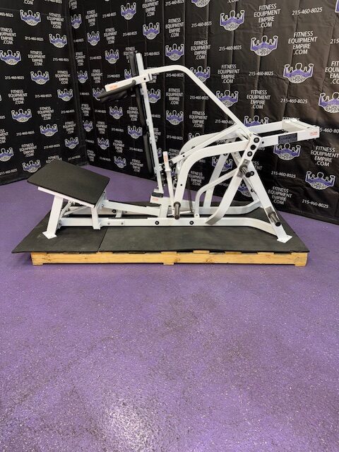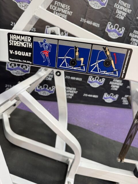Hammer Strength plate loaded V squat. This unit is in super clean refurbished condition. This is one of the best, most popular and sought after super/power squat machines. You can squat facing either direction and really blast the entire lower body. This machine will train the glutes, quads, hamstrings and calves. This machine sells for $6000 from life fitness. Save big