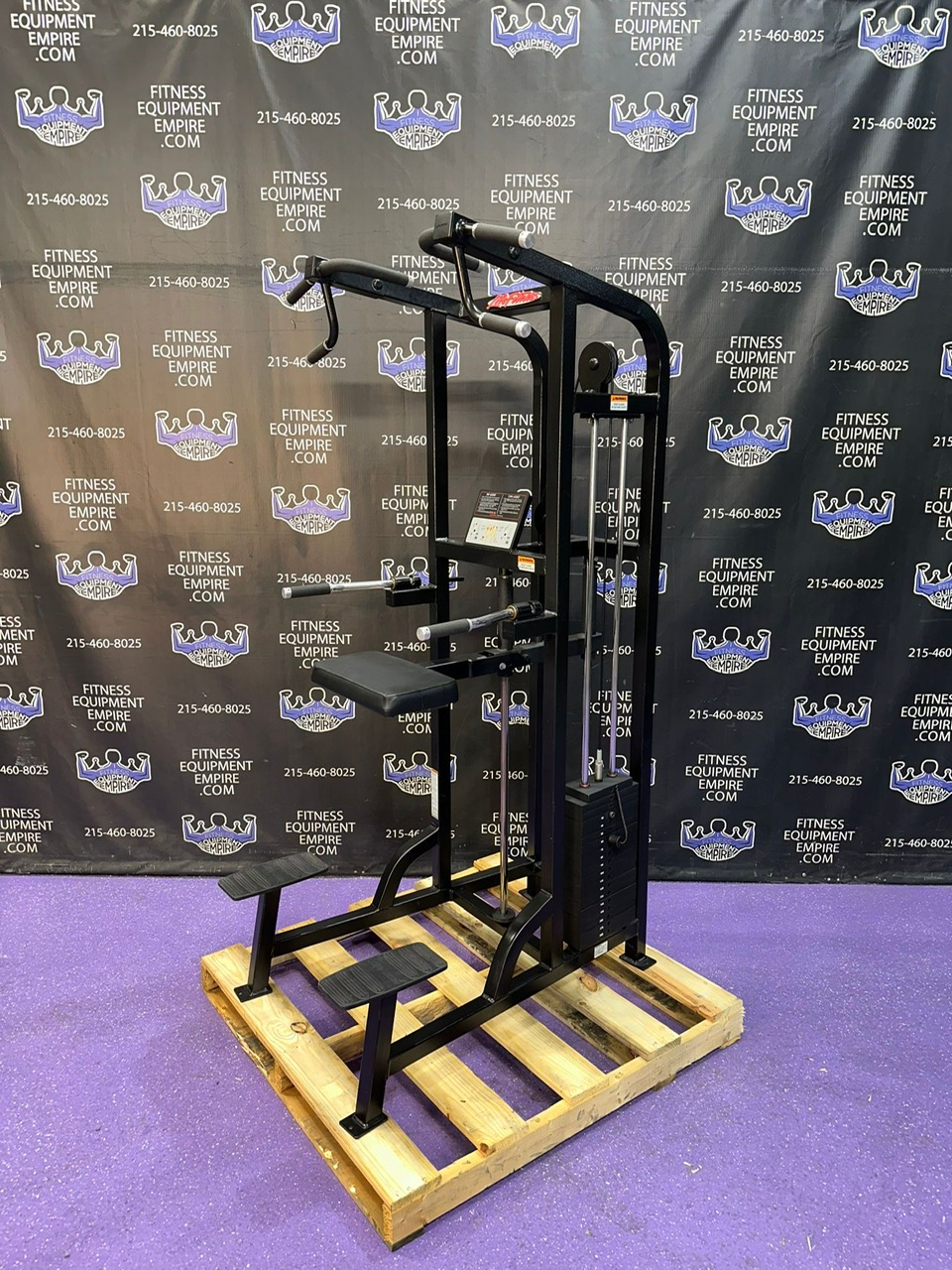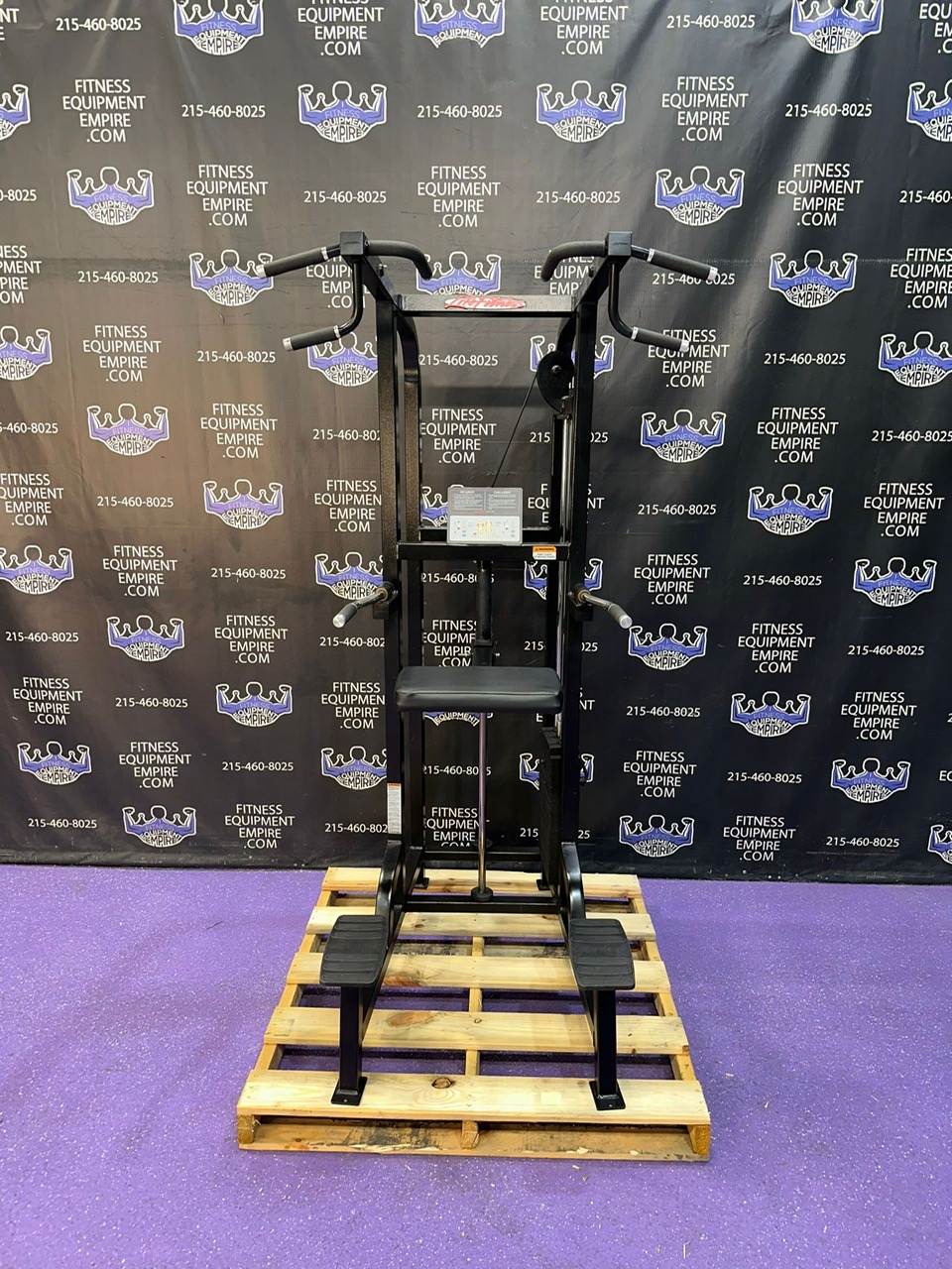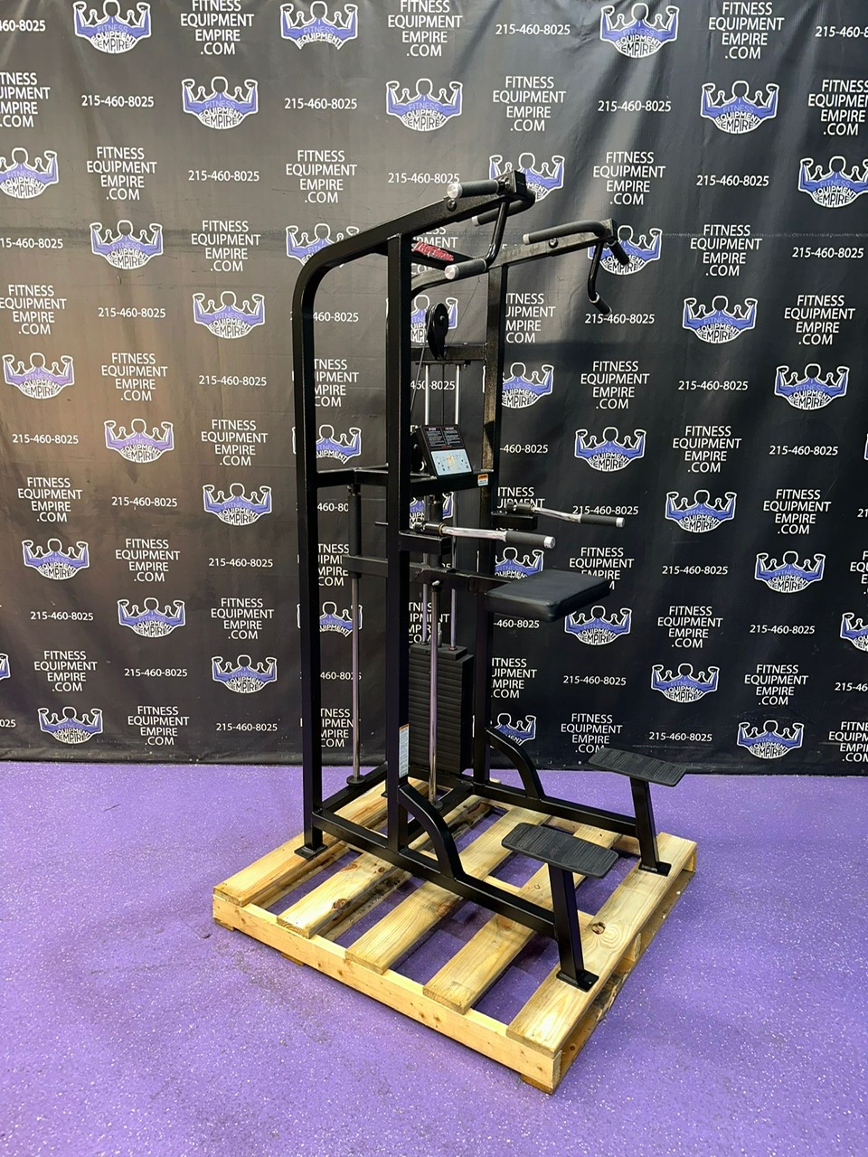 Life Fitness Pro assisted and free weight dip and pull-up. This unit is in excellent condition, and is extremely popular. You can train your back, shoulders, biceps, triceps, abdominals and obliques with this unit. The handles will also swivel wide and close grip. Built extremely heavy duty, beautiful looking commercial grade high end unit. This machine is in excellent condition and perfect working order.