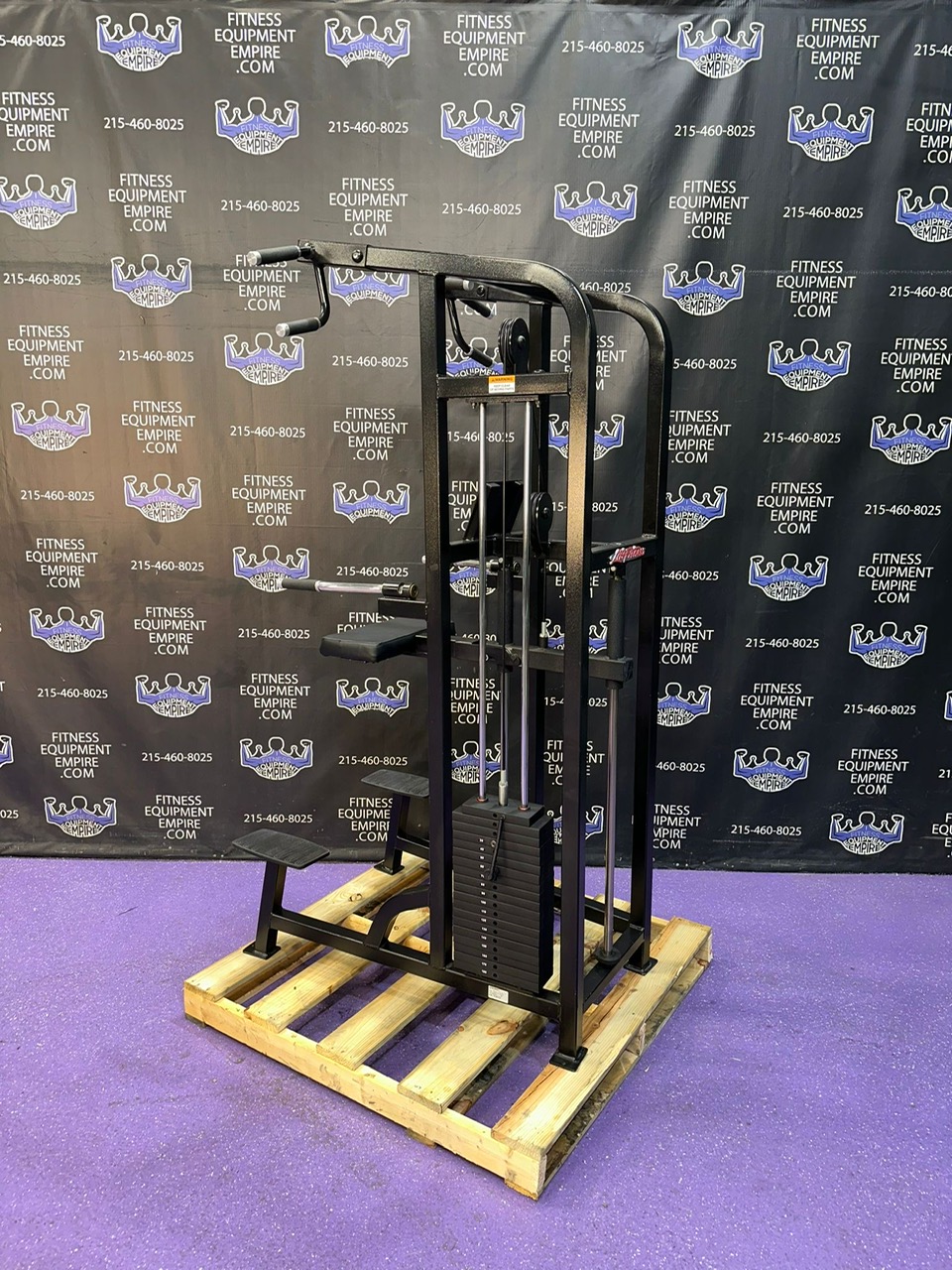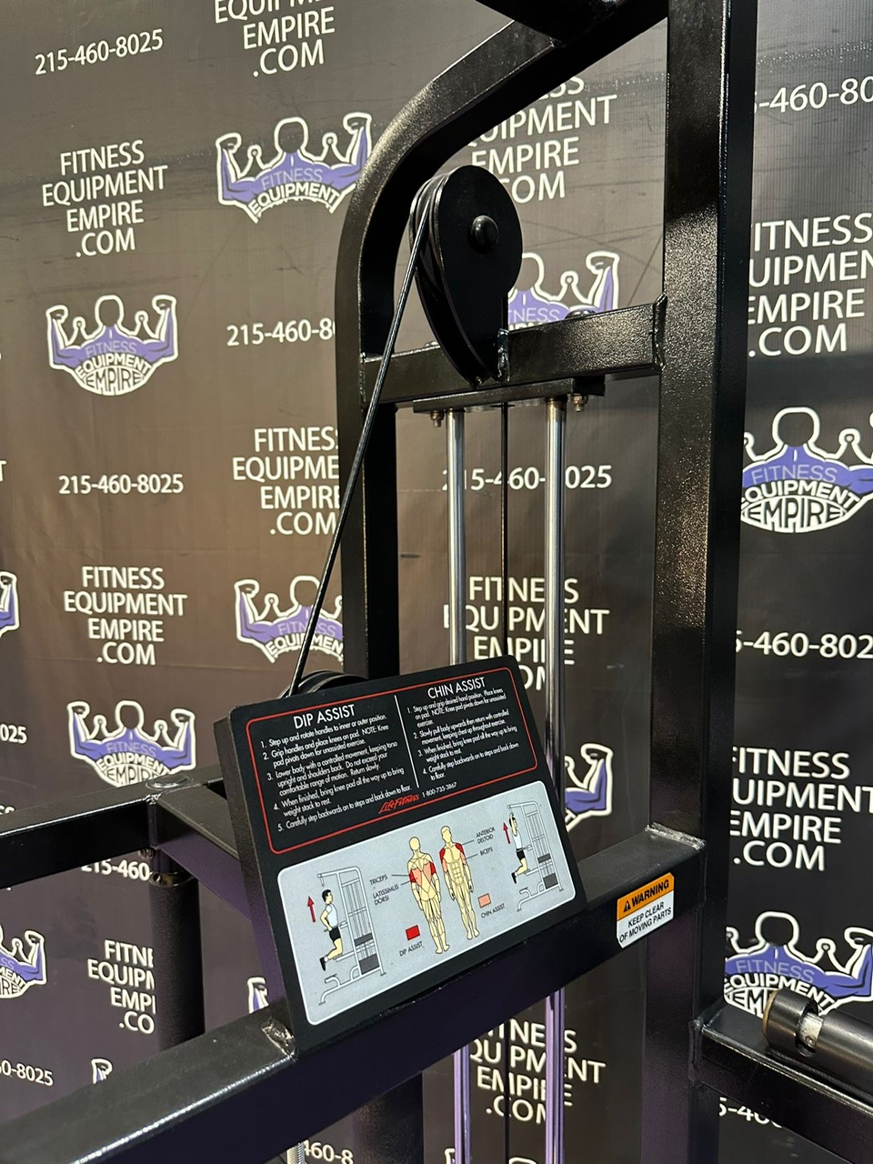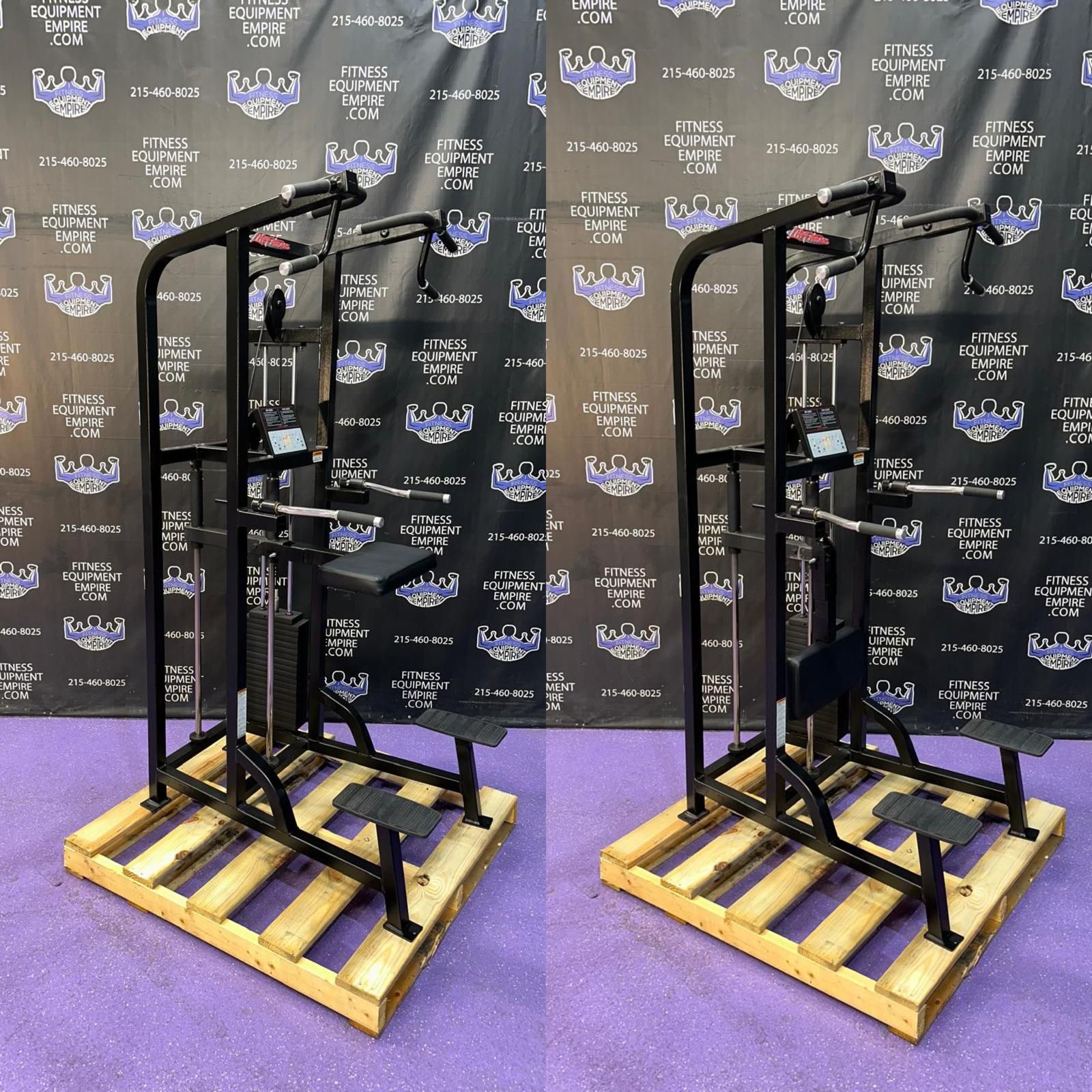 Life Fitness Pro assisted and free weight dip and pull-up. This unit is in excellent condition, and is extremely popular. You can train your back, shoulders, biceps, triceps, abdominals and obliques with this unit. The handles will also swivel wide and close grip. Built extremely heavy duty, beautiful looking commercial grade high end unit. This machine is in excellent condition and perfect working order.