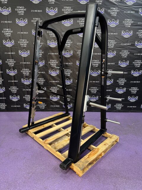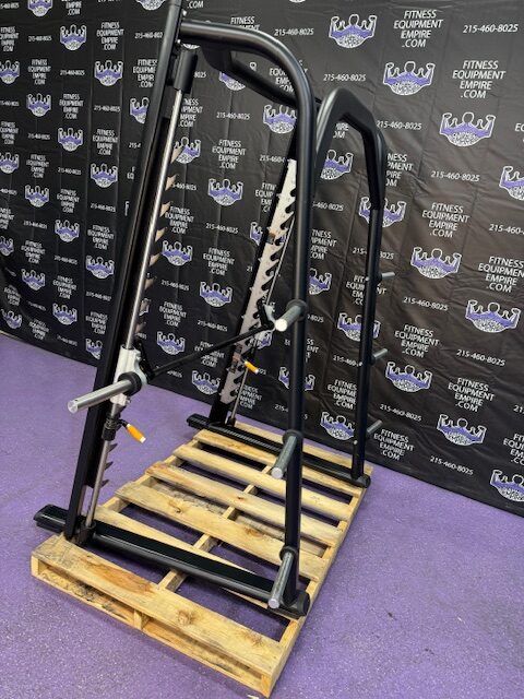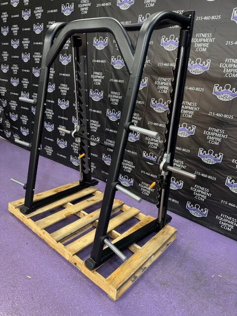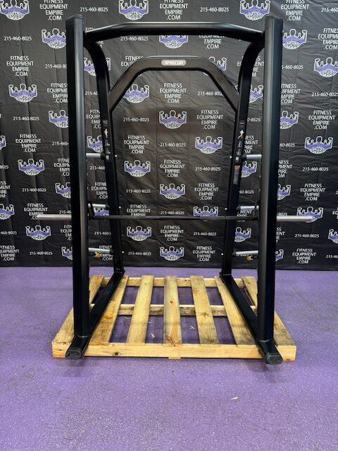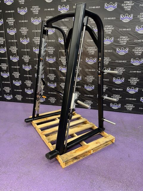 Precor Discovery platinum linear smith machine. This is the current model Precor. This machine has silky smooth linear bearings and is built like a tank! Built in safeties make it a great choice when training alone. The smith machine is just as effective as free weights and you’re far less likely to get hurt. You can literally perform hundreds of exercises with this unit.