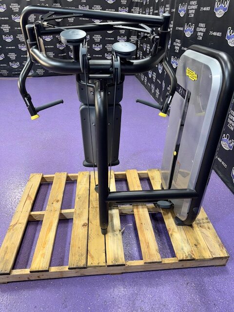 Technogym full commercial grade multi grip chest press with foot assist/spot. Very smooth, well built high end unit. The movement feels really good and provides a great squeeze and contraction in the mid and upper pecs. The various hand options allow you to blast your pecs from various angles. Technogym units in general have high retail prices ($5,000+), and have a reputation of being in the more high end clubs across the world. This machine is in beautiful condition.
